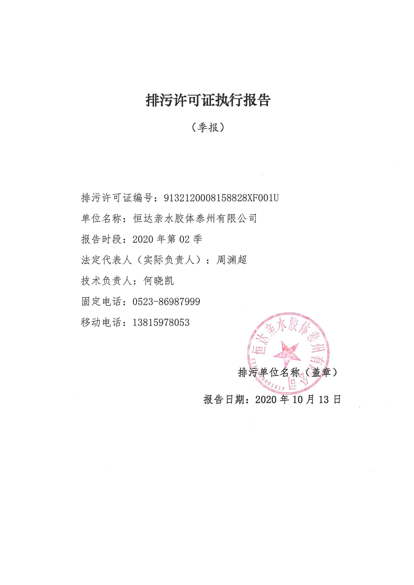 恒達(dá)科技泰興有限公司-2022年排污許可證第二季度執(zhí)行報(bào)告