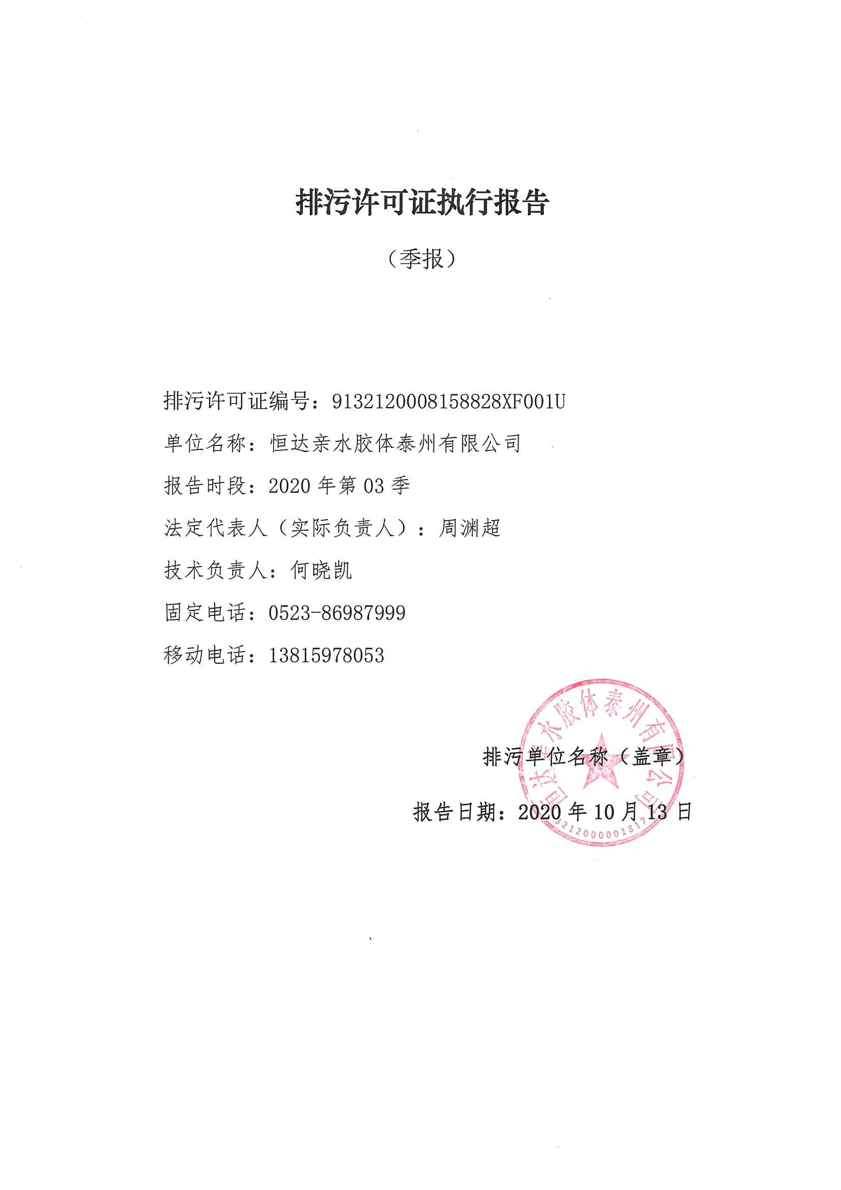 恒達(dá)科技泰興有限公司-2022年排污許可證第三季度執(zhí)行報(bào)告